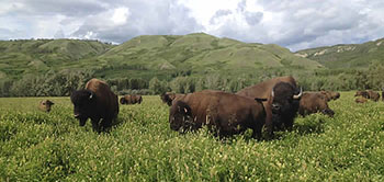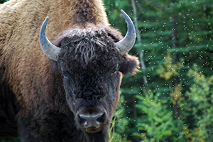 Jusqu’au début des années 1800, on estimait la population des bisons sur les Territoires ou plaine de l’Ouest à environ 60 millions. Avec l’arrivée des habitants de l’Est ou des européens venus coloniser l’Ouest et la construction des chemins de fer, ce cheptel est baissé à seulement quelques milliers de têtes à la fin du siècle. Entre 1868 et 1881, on estime à 31 millions de bisons qui furent tués, soit pour le cuir, pour les os utilisés pour la fertilisation des sols ou simplement pour l’amusement des passagers de train. Ce carnage a conduit l’espèce très près de l’extinction. Grâce aux mesures de protection prises par les instances gouvernementales canadiennes et américaines ainsi que quelques éleveurs soucieux de préserver l’espèce, le bison n’est plus en danger aujourd’hui.